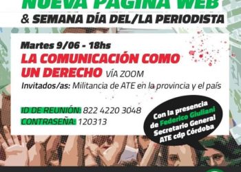 Mañana a las 18 horas, la Secretaría de Prensa y Comunicación de la Asociación Trabajadores del Estado (ATE-CTA) Córdoba, a...