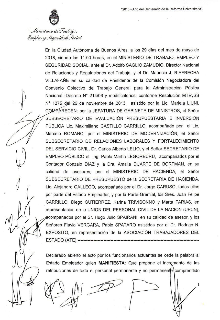 Fue en la mañana de hoy que, en la sede del Ministerio de Trabajo, Empleo y Seguridad Social, se reunió la Comisión Negociadora del Convenio Colectivo de Trabajo General para la Administración Pública Nacional. Participaron de la mesa paritaria funcionarios del Gobierno Nacional y representantes de ATE y UPCN. Por parte de ATE, los Delegados Paritarios presentes fueron Flavio Vergara y Pablo Spataro.