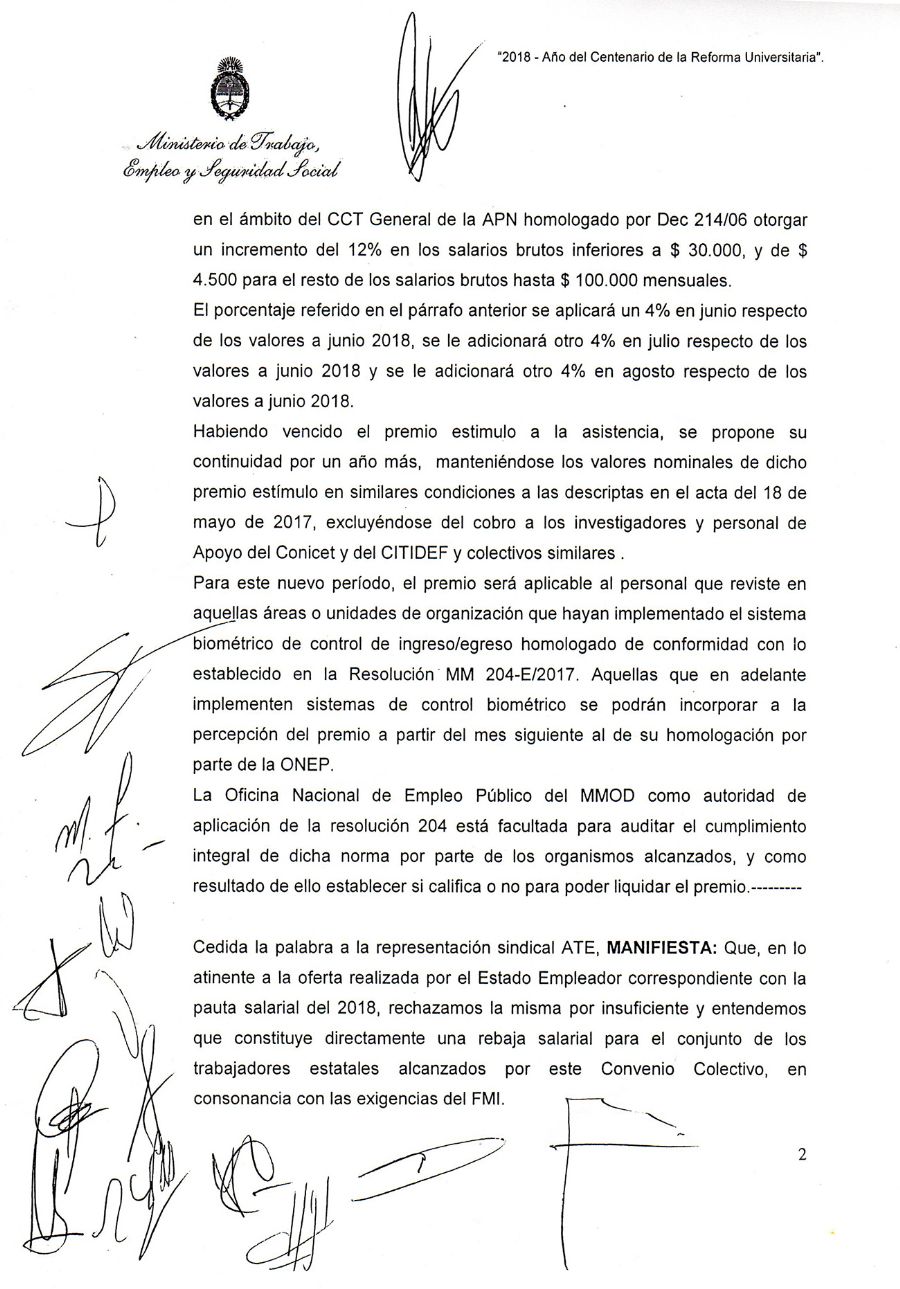 Frente a la oferta del Gobierno Nacional de un aumento salarial del 12%, y en un contexto de inflación que en lo que va de 2018 ya asciende a un 15%, ATE rechazó de plano la propuesta y planteó una alternativa. Sin embargo, el Gobierno rechazó la misma y la reunión pasó a cuarto intermedio hasta el martes que viene. Por esto, el Congreso Nacional de ATE que se llevó a cabo hoy en Huerta Grande, Córdoba, resolvió convocar a un Paro Nacional para el próximo viernes 1º de junio. El mismo se llevará a cabo en el marco de la Marcha Federal convocada por la CTA Autónoma y otras organizaciones sindicales y sociales, que comenzó el lunes en distintos puntos del país y que confluirá el viernes en la Capital Federal.