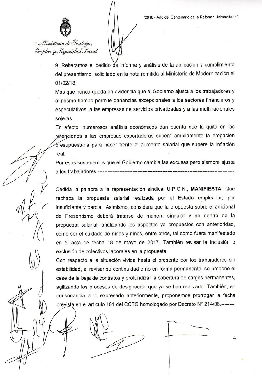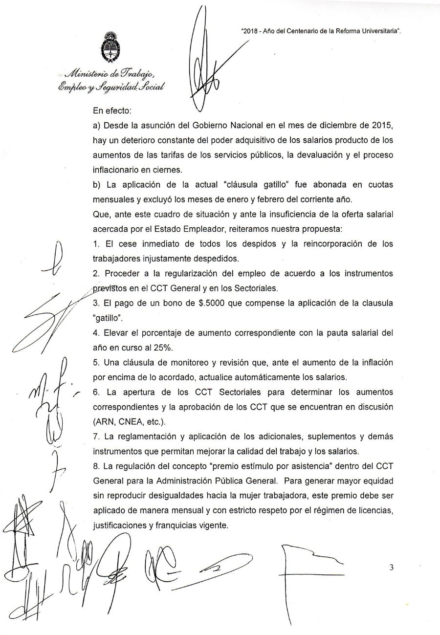 Pablo Spataro, por su parte, agregó: “Hicimos hincapié, una vez más, en nuestro reclamo por el fin de los despidos, por la reincorporación de los compañeros y compañeras que fueron injustamente despedidos, y por la resolución del compromiso de éste Gobierno a terminar con la precarización laboral en el Estado, tema que esta gestión criticó mucho cuando asumió”.