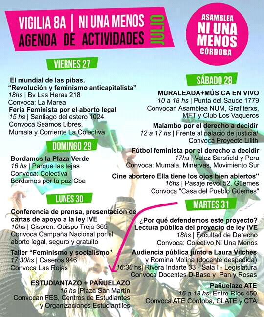 Mañana martes 31 de Julio, a las 16 horas, en la sede de ATE Entre Ríos 450 realizaremos un pañuelazo, en el marco de la agenda de actividades organizada por la Asamblea Ni Una Menos Córdoba, en la vigilia hasta el día de la votación en el Senado el 8 de agosto.