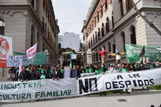 Allí se realizó un acto en el que Melina Zocchi, de la mesa de coordinación nacional de la SAF, expresó: “Es ineludible detener el atropelló que el Gobierno está haciendo hacia los pequeños y medianos productores, y a los trabajadores que los acompañamos, porque implica el desmantelamiento de las economías regionales y de la soberanía territorial”.