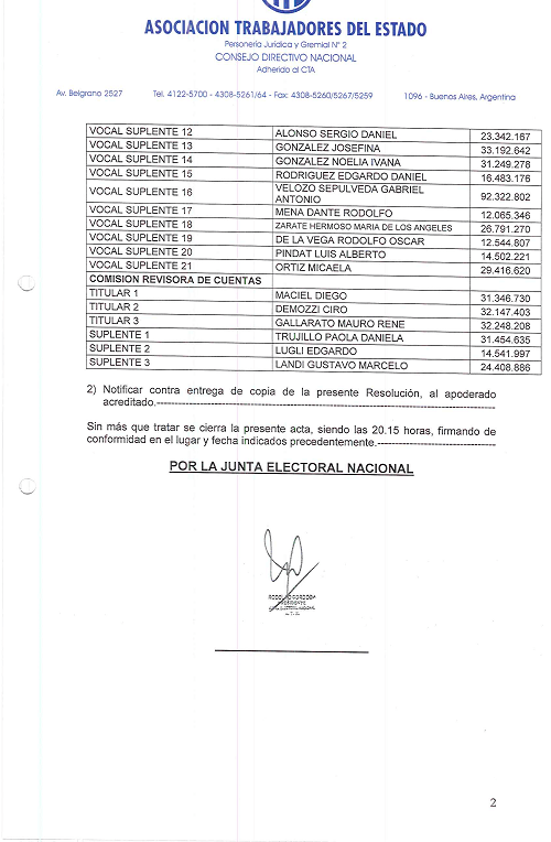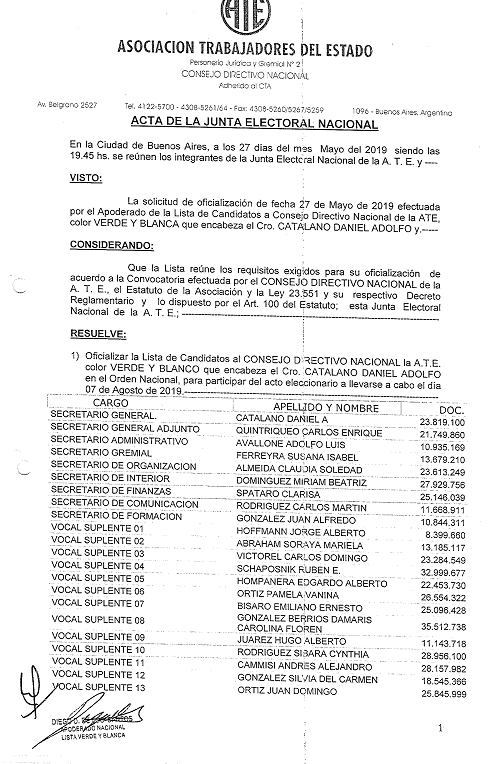 Por último, la lista Verde y Blanca presenta para la Secretaría General a Daniela Catalano y a Carlos Quintriqueo como Adjunto.