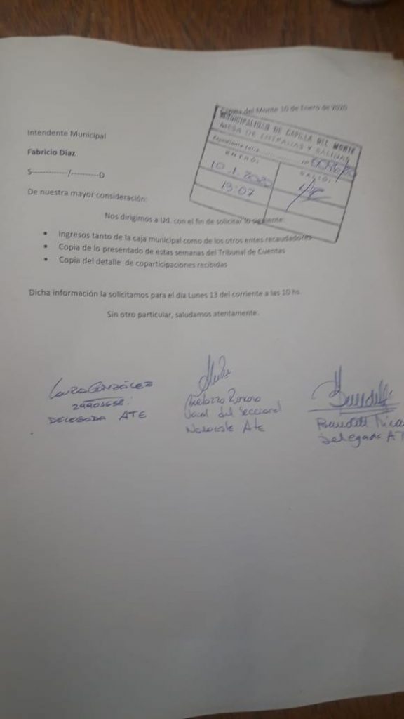 Capilla del Monte.-. Muy lejos de lo que había prometido previo a su asunción, el intendente de Capilla del Monte, Fabricio Díaz, no pudo reunir el dinero para abonarles el salario a los empleados municipales y ayer sólo depositó el 40% del total acordado.