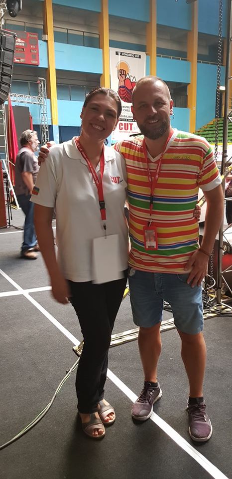 El dirigente riocuartense, escribió por Facebook: “Nos encontramos en la Sede de la Central Unitaria de Trabajadorxs (CUT) de Chile en la capital trasandina, Santiago, participando de la Apertura del 12º Congreso Nacional de esta Central hermana, realmente es emocionante la valentía del pueblo chileno, de nuestras compañeras sindicalistas que siguen poniéndole el cuerpo a la represión del gobierno de Pineda”.