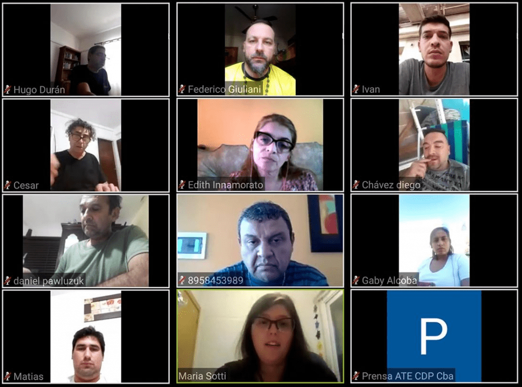 Con la participación casi completa se realizó hoy la primera Reunión de Secretariado del Consejo Directivo Provincial (CDP) de ATE Córdoba por Videoconferencia. Se aprobó formalmente la creación de los departamentos de Género, Salud Provincial y Municipales.