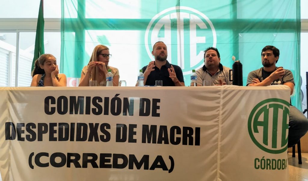 Con la presencia de los Secretarios Nacionales de ATE: Adjunto, Rodolfo Aguiar; Gremial Alejandro Garzón; del Interior Vicente Marti; de los Coordinadores de la Corredma, Cesar Baliña y Francisco Dollman; y con la participación de miembros de los Consejos Directivos Provinciales, entre quienes se hallaba el Secretario General de ATE Córdoba, Federico Giuliani; y de despedidas/os de todo el país, “acabamos de terminar una reunión de cuatros horas con compañeros y compañeras víctimas del ajuste macrista”, expresó Federico Giuliani en sus redes sociales. Luego de un informe por provincia y sector desguasado por las políticas de ajuste de Macri, “definimos retomar la iniciativa para poner en agenda del Gobierno Nacional las reincorporaciones de los y las miles de despedidxs en los cuatro años de Cambiemos”, expresó el Secretario General de ATE Córdoba. Por la Provincia participaron, además, referentes despedidos y despedidas de Fadea, Fabricaciones Militares de Río Tercero y Villa María, Secretaríaa de Agricultura Familiar, Senasa y CNRT.