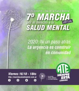 Tras la multitudinaria respuesta que obtuvo el año pasado, el próximo 16 de octubre se llevará a cabo la 7ª Marcha por el Derecho a la Salud Mental en Córdoba, esta vez con modalidad virtual debido a la pandemia.