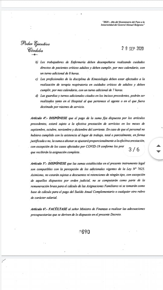 ATE rechaza el decreto provincial 690/2020 del gobernador Schiaretti que estipula el pago de un adicional extraordinario no remunerativo, y por lo tanto en negro, para el personal que se desempeña en las UTI y las UCI de adultos en los hospitales provinciales.