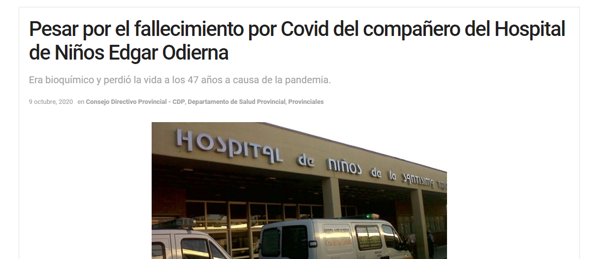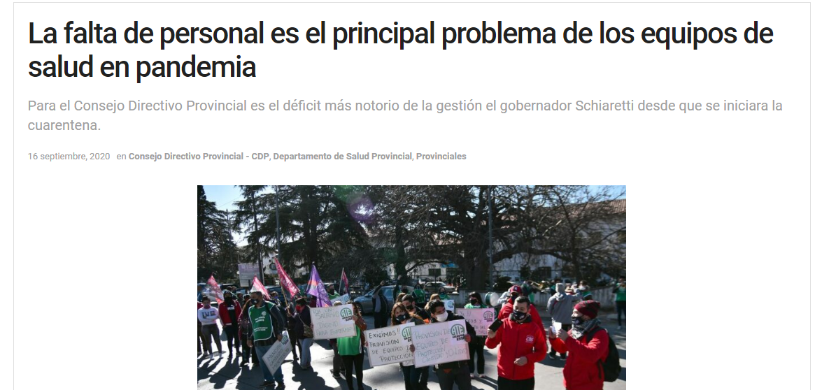 Por otra parte, el secretario General del Consejo Directivo Provincial evaluó positivamente que se haya unificado la oposición para interpelar al Gobierno, que es el responsable de garantizar la atención sanitaria a la población, “máxime cuando se está preparando para tratar el presupuesto 2021. Es un momento clave para pedir más partidas para incorporar más personal”.