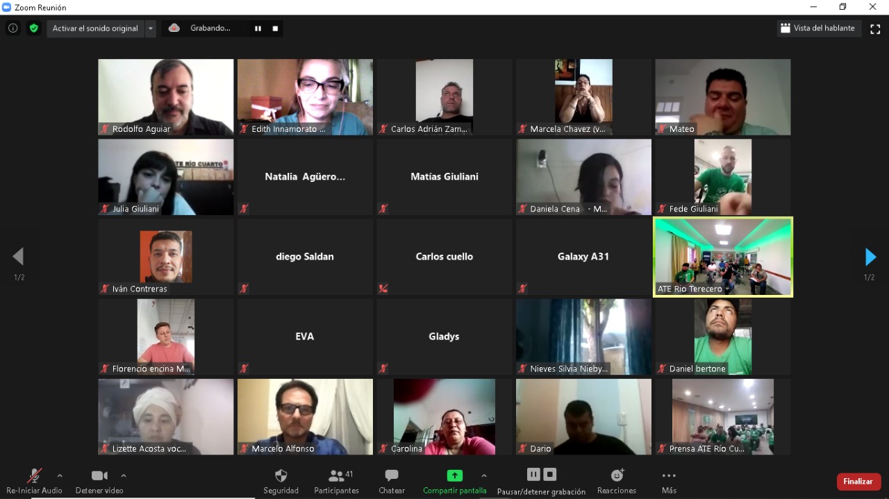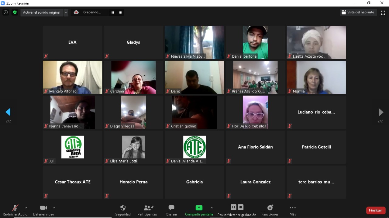 El pasado viernes 6 de noviembre, en el marco del Día de la y el Trabajador Municipal, el Consejo Directivo Provincial ATE Córdoba realizó un plenario virtual abierto a trabajadoras y trabajadores municipales, con el objetivo de profundizar la instancia organizativa del sector, debido al crecimiento de afiliaciones en el sector en distintas regiones del interior provincial y trazar estrategias en común.