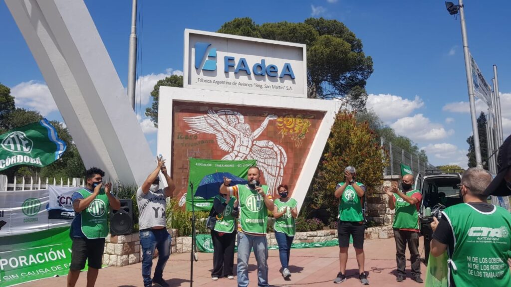 Desde temprano, ATE reaslizó hoy el acto de protesta frente al ingreso a la fábrica de aviones, en Ruta 20, exigiendo la inmediata reincorporación de las y los despedidos durante el macrismo. “La dra Mirta Iriondo, directora de esta fábrica, fue candidata a diputada nacional por el FdT en 2019 y que entre sus promesas de campaña dijo que la reincorporación sería un hecho si ganaban”, destacó Giuliani.