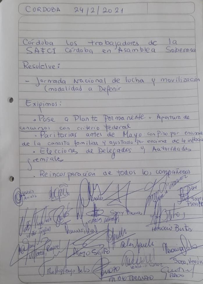 Las trabajadoras y trabajadores de Agricultura Familiar exigieron, además -en una nota firmada por quienes las y los representantes que participaron de la reunión-, el pase a planta permanente a través de concursos con criterio federal, paritarias “antes de mayo con piso por encima de la canasta familiar y ajustadas por sobre la inflación”, elecciones de delegadas/os y autoridades gremiales y reincorporación de todas y todos los y las despedidos/as del Estado Nacional.