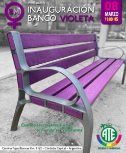 Entre las actividades que se desarrollan durante la Jornada de Lucha, con paros, asambleas y una gran movilización simultanea en todo el país, las y los trabajadores agrupados en ATE de la Administración Nacional de Aviación Civil (ANAC) realizó hoy un acto donde se presentará la instalación de un banco violeta que simboliza las lucha de las mujeres contra la violencia de género.
