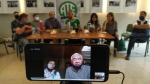 El conversatorio abordó la historia de estos compañeros y compañeras, y conto con la presencia de la conducción de ATE Córdoba desde la sede de nuestro gremio, que previamente planteó tres arboles en el edificio en representación de los 30 mil desaparecidos de la dictadura cívico-militar-eclesiástica que asoló nuestro país a partir de 1976.