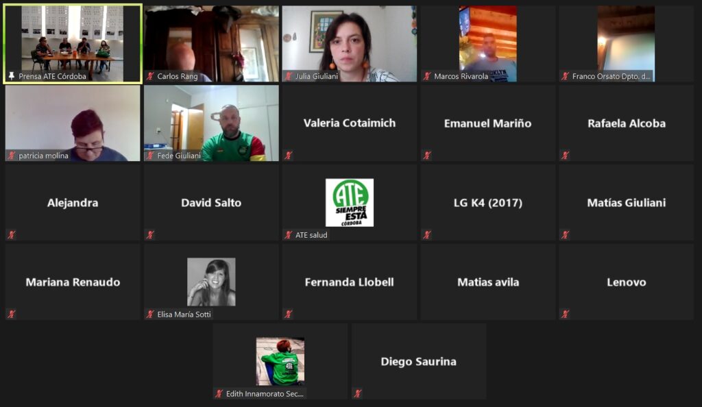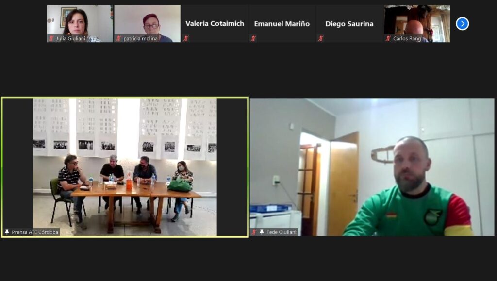 De la mesa de lanzamiento, participaron también Valeria Cotaimich -Licenciada y Profesora en Psicología, Docente investigadora de la UNC, coordinadora de áreas transdisciplinares en la Facultad de Ciencias Médicas y en la Facultad de Psicología de la UNC-, Andrea Ferreyra -Lic. en Psicología recibida en la UNC, trabajadora de la Salud Pública del Servicio de Salud Mental del Nuevo Hospital Río Cuarto desde el año 2003-, , Omar Alerzia -trabajador de la Maternidad Provincial de Córdoba, referente de los Equipos de Salud Provincial de ATE Córdoba y Secretario de Organización del Sindicato-, Julia Giuliani -Secretaria de Prensa y Comunicación de ATE Córdoba- y César Theaux -Secretario de Formación del CDP-.