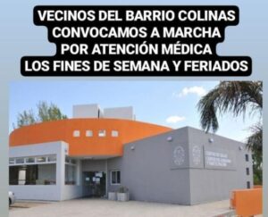 Por un lado, un grupo de vecinos impulsa la realización de una marcha para reclamar que haya atención sanitaria los fines de semana y feriados en el Centro de Salud del Distrito Oeste. La movilización partirá a las 17 desde la plaza del barrio y finalizará en el ‘hospitalito’.