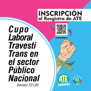 📝🏳️🌈 Formulario de Inscripción al Registro del CUPO LABORAL TRAVESTI TRANS de ATE Córdoba. LINK: https://forms.gle/GTiDFq5i3kda4S2k9