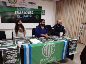 En conferencia de prensa, Rafaela Alcoba, Secretaria General de ATE Río Cuarto, junto a Franco Orsato, Ana Meneghello y Mabel Nieto, integrantes del Departamento de Discapacidad de CDP, solicitaron desde ATE la prioridad de vacunación para la población con discapacidad por ser en gran parte población de riesgo y poseer en muchos casos diversos factores de comorbilidad.