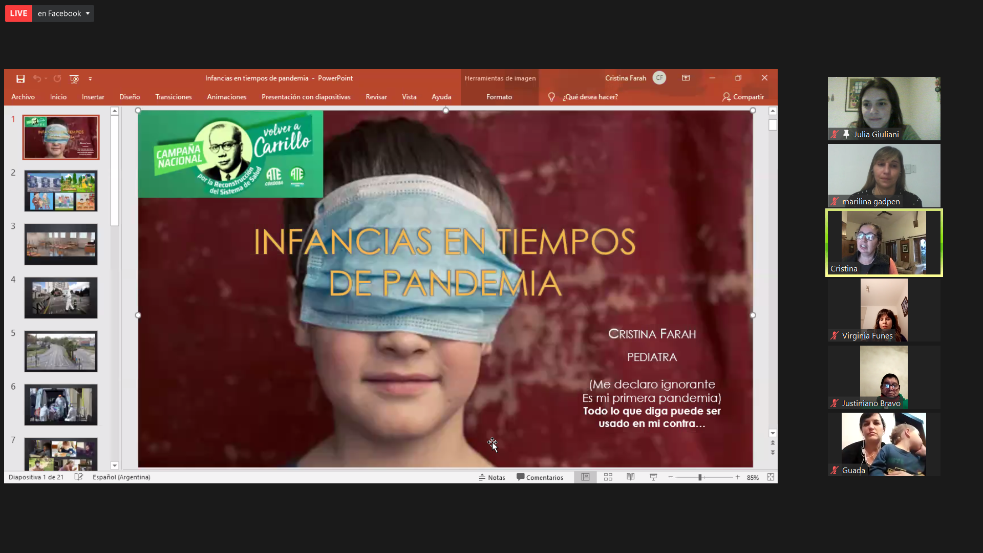 Seguidamente dio uso de la palabra a la pediatra Cristina Fara, que contó su experiencia en la atención médica durante la pandemia.