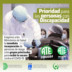 La Secretaria de Discapacidad del Ministerio de Salud de la Provincia implementará la inscripción de vacunación para personas con discapacidades con la modificación de los parámetros que ATE propuso a principios de mes.
