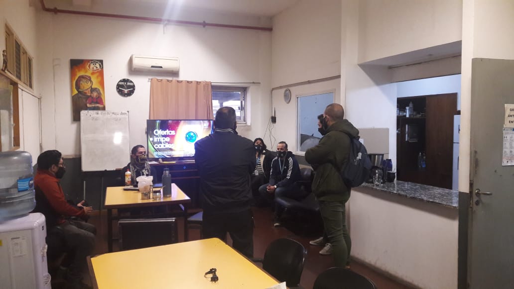 “Recorrida y Asambleas en el Aeropuerto Internacional de Córdoba visitando a la primera línea de Sanidad y Bomberos de la ANAC. Luego, reunión con el Jefe del Aeropuerto, Gustavo Bustos, para exigir la vacunación para las y los esenciales, ropa de trabajo y mejoras en las condiciones de Seguridad e Higiene Laboral”, expresó Giuliani en sus redes.