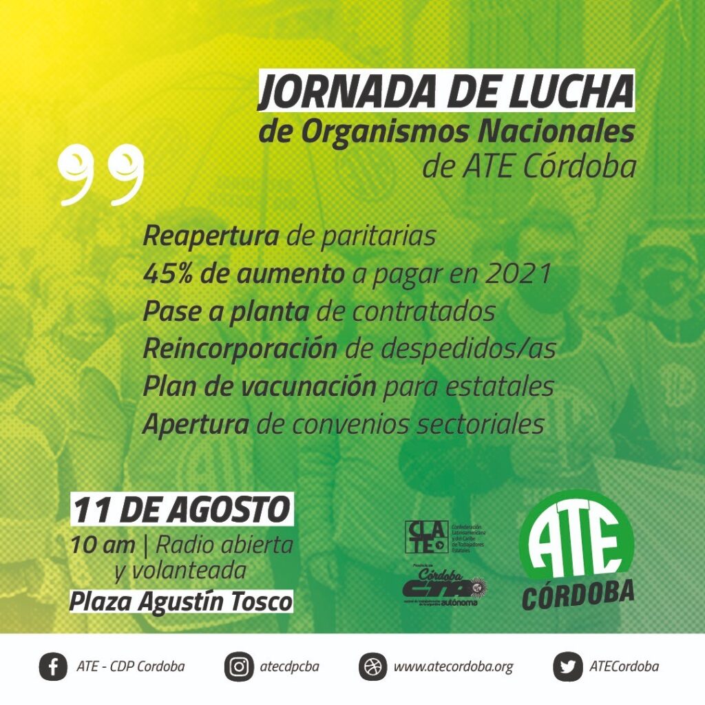 La medida fue resuelta en el plenario de delegados nacionales realizado el pasado 29 de julio y tiene por objetivo reforzar la posición de los estatales con vistas a la reapertura de paritarias que el gobierno nacional llevará a cabo este mes, atento a la necesidad urgente de lograr una recomposición que devuelva poder adquisitivo al salario de las y los estatales, muy castigado por la inflación y las míseras pautas salariales de las última paritarias.