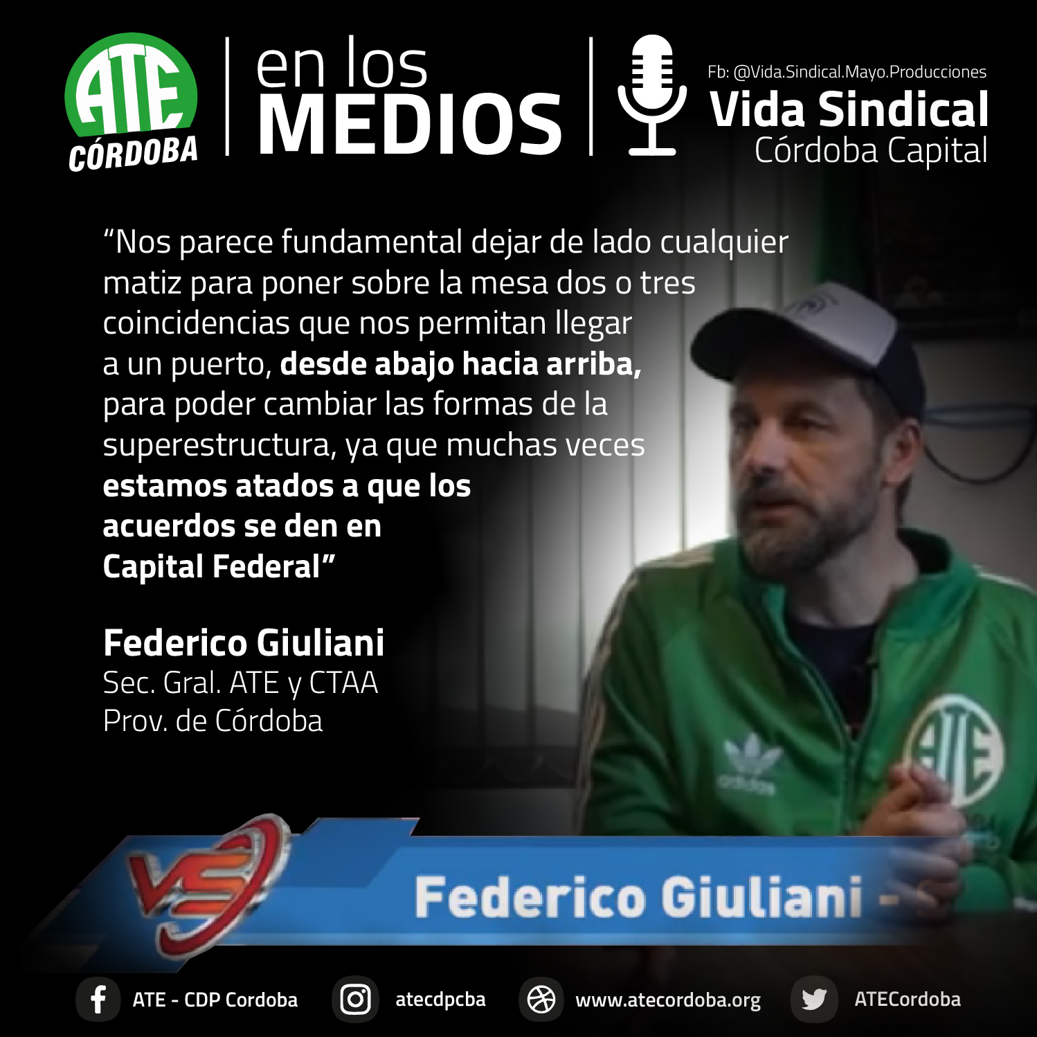 “Para nosotros es un orgullo formar parte de este panel que va a hablar sobre los desafíos del movimiento obrero en Argentina, con Pablo Moyano, Daniel Yofra, Lito Borello de la UTEP. Primero que nos tengan en cuenta. Estar sentado en esa mesa de discusión, siendo un dirigente del interior que está haciendo sus primeros pasos en Córdoba Capital, es muy importante”, dijo Federico Giuliani, en una entrevista concedida al programa televisivo Vida Sindical.