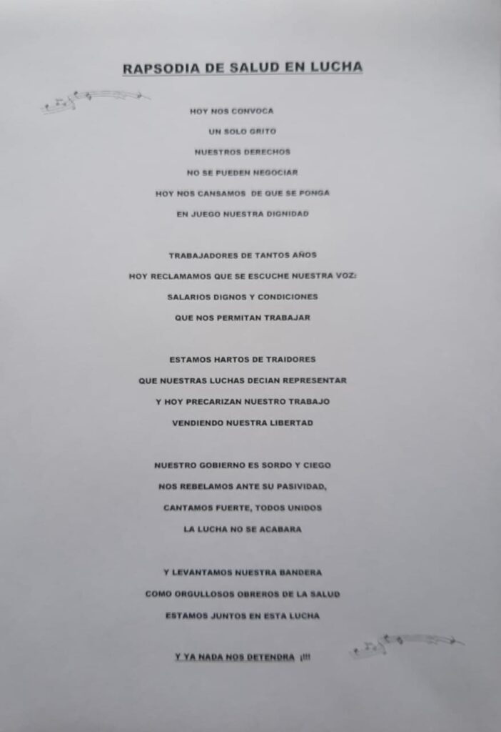 “Entendemos que este 21 de septiembre no es un día para festejar para el equipo de salud pero si para conmemorar el Día de la Sanidad, jornada que homenajea al trabajo abnegado y vocacional de quienes desempeñan su tarea en el sistema de salud. En esa línea, durante el acto se entonaron un par de canciones, donde se le reclamo al gobierno, expresando no solo la bronca sino también la esperanza y eso lo transformó en un acto importante, distinto y creemos que quizás los trabajadores estén buscando nuevas formas de expresión”, aseguró Duran.