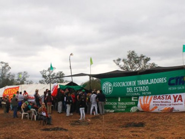 En ese lugar, desde hace 32 días, vecinos de El Galpón, El Tunal, Joaquín V. González , El Quebrachal y Metán acampan y bloquean el acceso a donde se pretende construir el emprendimiento.