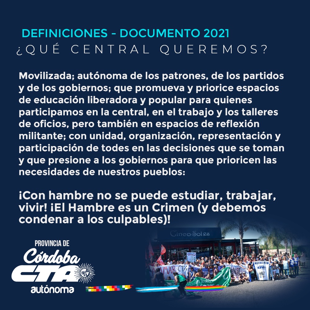 Por último, consultada sobre qué impresión tiene respecto al clima social de fin de año en la provincia, Alcoba señaló que “diciembre es la época donde salen las necesidades y la bronca acumulada en todo el año. En este 2021 nos sentimos medio desbordados por no tener a mano un remedio que vayamos a utilizar para paliar la situación. En ese marco, estamos en conversaciones con el intendente de rio cuarto, con el gobierno provincial para aliviar la tensión de los compañeros. Esperemos que podamos brindar en paz, que cada compañero tenga algo para poder llevar a su mesa. Entendemos que el verano va a ser difícil. Pero con la solidaridad de la gente y poniéndole el pecho vamos a superar este momento. La central no va a abandonar la calle y nos vamos a hacer mucho más fuertes. Esperemos que no venga otra ola de Covid y que podamos darle dignidad a la gente”, concluyó.