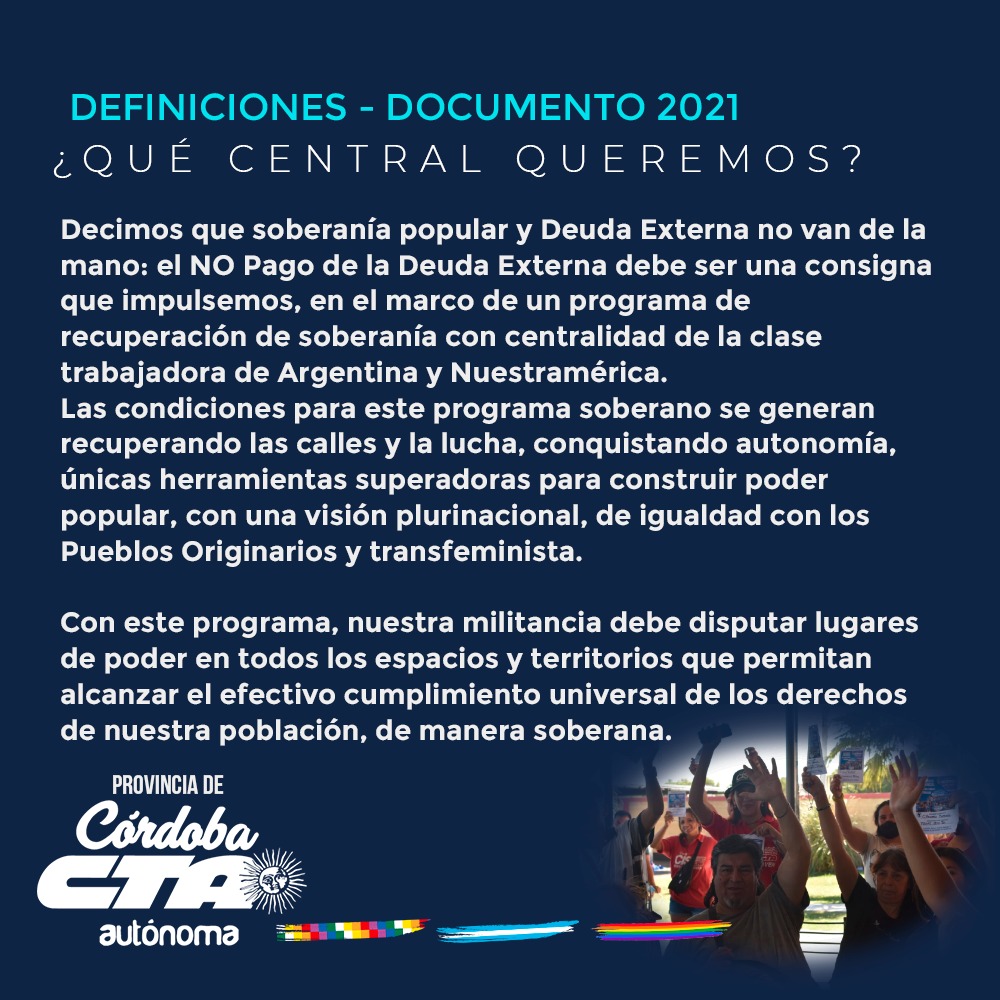 Respecto a los temas tratados, Alcoba dio centralidad al “no pago de la deuda externa con el hambre del pueblo. Fue algo transversal que nos atraviesa a todos, tanto los sindicatos privados, como los estatales y la organización territorial, es nuestra bandera. Hoy están pidiendo más ajuste y eso no se puede permitir. Además, es una deuda totalmente ilegal que se dio violando el propio reglamento del FMI. Que la paguen los picaros que la pidieron y después la fugaron”, proclamó.