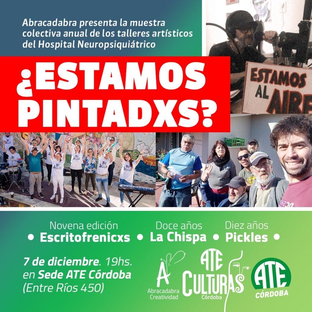“¿Estamos pintados?” es una invitación a la comunidad para festejar en ATE el compromiso por salud mental en Córdoba, la aplicación efectiva de la Ley de salud mental y el balance de la masiva movilización que se llevó a cabo la semana pasada. La sede de ATE se encuentra en Ente Ríos 450.