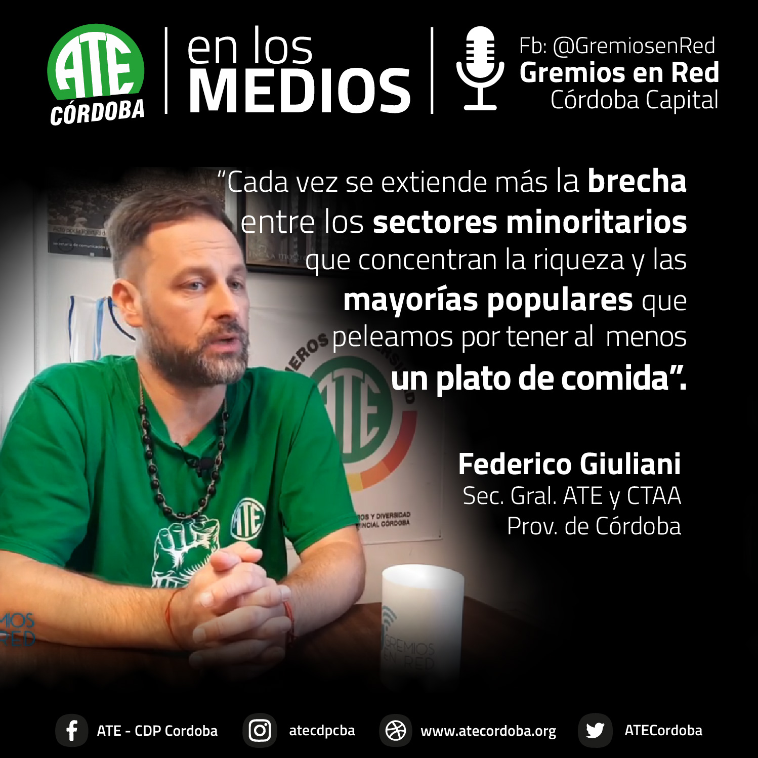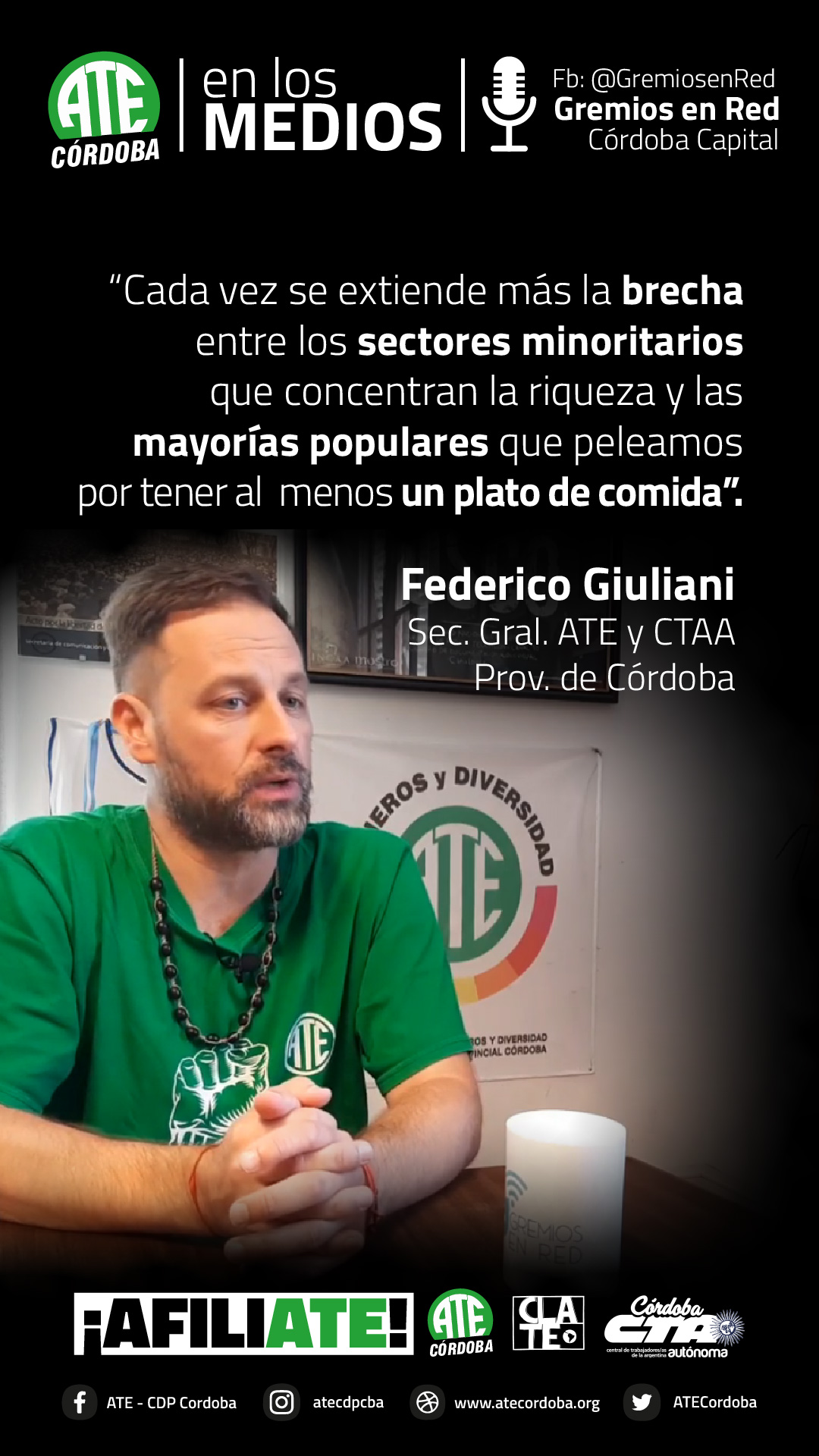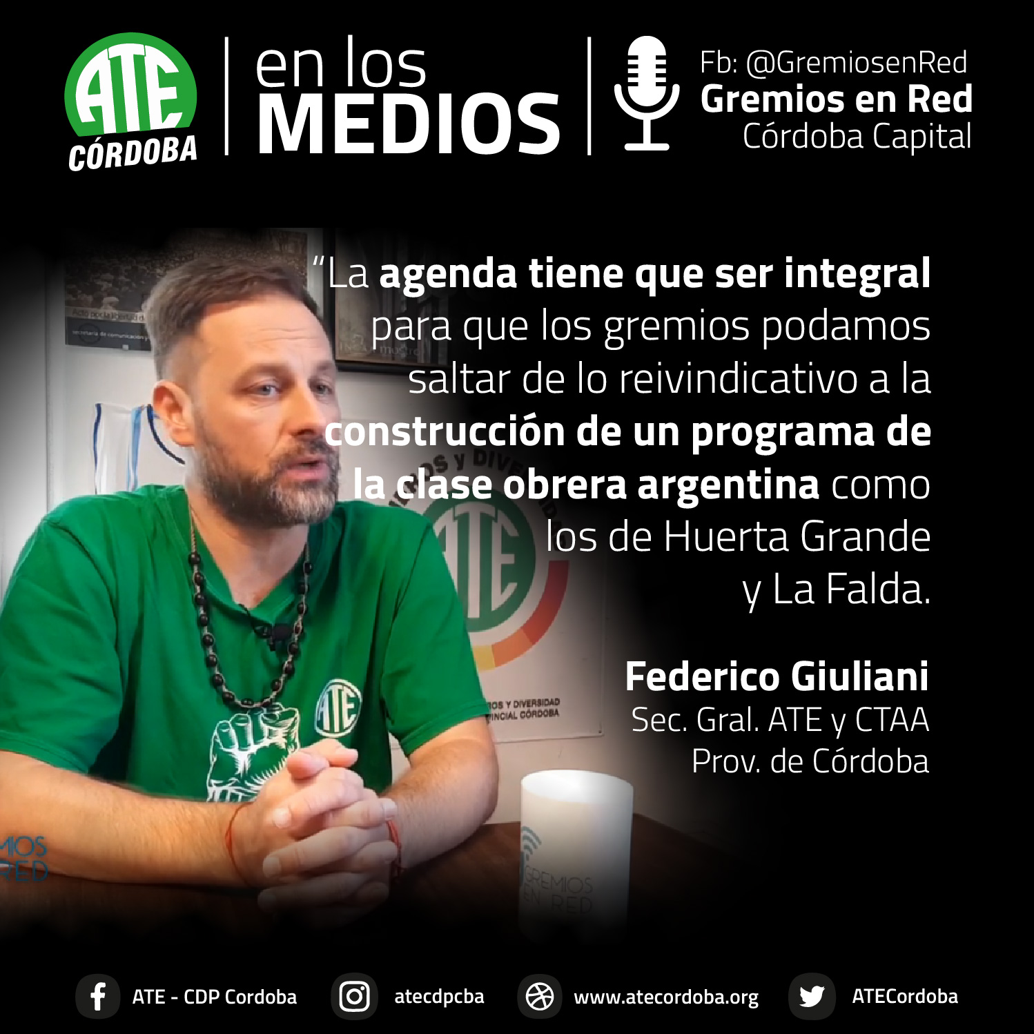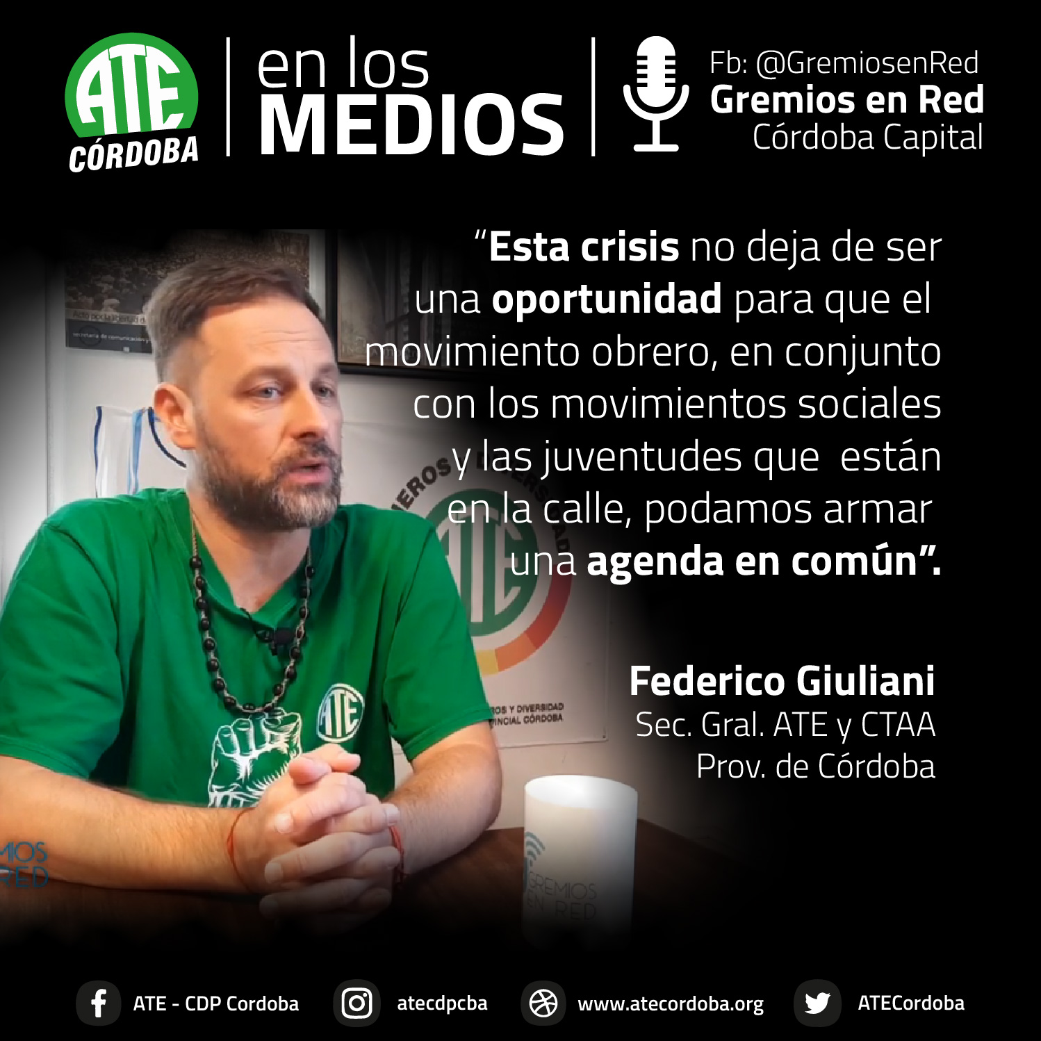 En una entrevista que concedió al portal Gremios en Red, el secretario General de ATE Córdoba, Federico Giuliani, lanzó definiciones sobre la coyuntura que atraviesa la clase trabajadora, tras dos años de pandemia sanitaria y cuatro de pandemia neoliberal macrista.