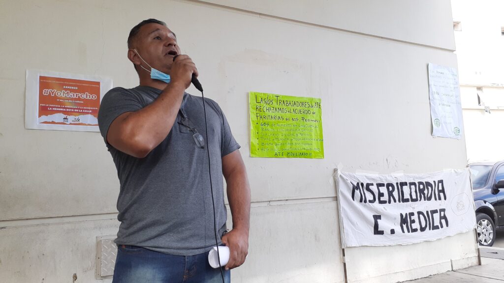 Un fuerte y emotivo acto se realizó ayer en el Hospital Misericordia, en el ingreso a la Guardia, cuando las y los trabajadores se convocaron con el cuerpo de delegados de ATE para ratificar la continuidad del plan de lucha, que se fundamenta en el rechazo a la pauta salarial que Schiaretti firmó con el SEP.