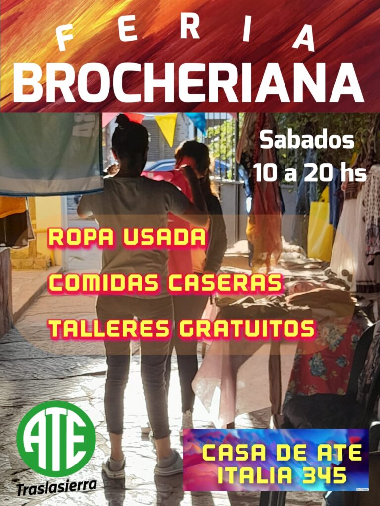 La Casa de ATE de Villa Dolores será escenario de la Feria Brocheriana, que se realizará todos los sábados de 10 a 20 horas en nuestra sede de calle Italia 345.