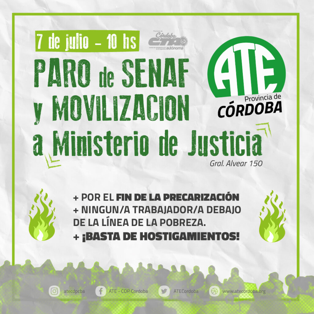 Federico Giuliani, Secretario General de ATE Córdoba, calificó la victoria como “histórica, en un sector que decidió relativamente hace poco tiempo afiliarse y organizarse en nuestro sindicato” y ratificó la “importancia de la lucha gremial de las y los trabajadores que se organizan para reclamar por sus legítimos derechos”. En ese sentido, Giuliani remarcó a ATE “como lugar de organización de las y los precarizados de la Provincia: nuestro gremio no discrimina ante situaciones y condiciones laborales impuestas arbitrariamente por una patronal que flexibiliza el trabajo, recorta, y hace caer sobre nuestros hombros los costos de sus crisis”. Es por ese motivo, que el máximo referente del sindicato ratificó la jornada de lucha con paro sectorial y movilización para el próximo jueves 7 de julio a las 10 am frente al Ministerio de Justicia y DDHH de la Provincia en calle Alvear al 150: “las compañeras continúan precarizadas, cobrando salarios muy por debajo de la canasta y sometidas a las más brutales persecuciones por parte de la patronal”.