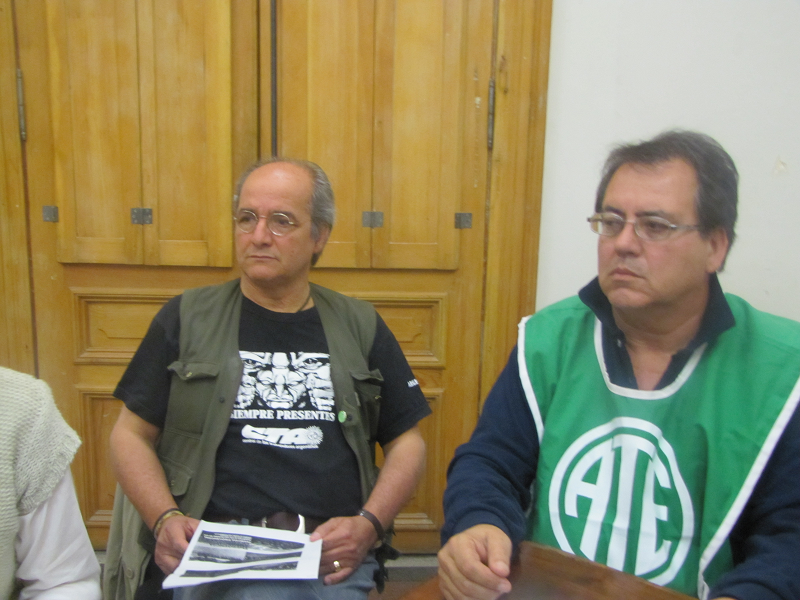En la conferencia de prensa estuvieron presentes el ex Director de Derechos Humanos de la municipalidad de Córdoba, Luis Baronetto, el secretario General dela CTA-Córdoba Capital, Guido Dreizik, la secretaria General de los Trabajadores del Poder Judicial, Irina Santesteban, el secretario Gremial del Cispren, Esteban Liendo, el Secretario de Relaciones Institucionales de la CTA-Córdoba, Raúl Gómez, Luis Barcena, secretario de Interior de ATE Córdoba y Daniel Pauluchuzk, secretario de Prensa, junto y a Normando “el Piojo Ocampo, secretario general de ATE La Rioja e integrante de la Asamblea el Famatina No se toca.