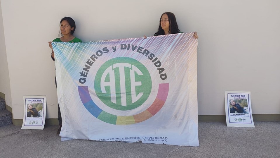 El día de hoy en que comienza el juicio por el femicidio de Ivana, no fue la excepción: compañeras de ATE de diversos sectores de trabajo de la ciudad de Córdoba, acompañadas también por la Secretaria General de CTA-A Cruz del Eje, la trabajadora municipal miembro de ATE Mónica Rodríguez, se apersonaron con banderas y pancartas en la Cámara del Crimen de Cruz del Eje.
