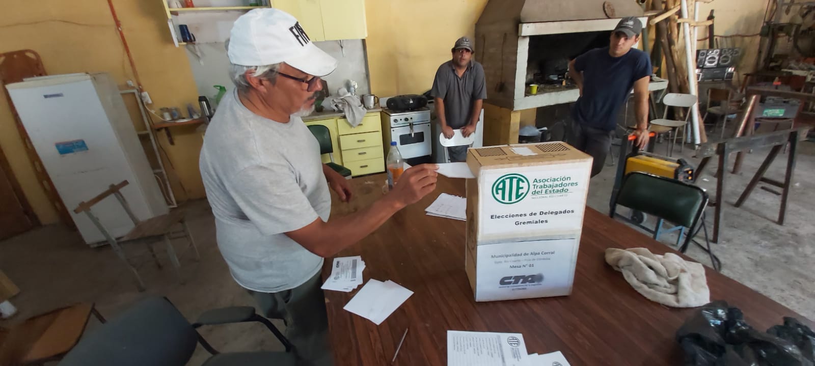El miércoles de la semana pasada se llevaron a cabo las elecciones de Delegados Municipales de la Asociación Trabajadores del Estado (ATE-CTAA) en Alpa Corral, localidad serrana distante 97 kilómetros de la ciudad de Río Cuarto. De ese modo, ejerciendo los principios de Libertad y Democracia Sindical, las y los trabajadores del Municipio eligieron a sus representantes gremiales.
