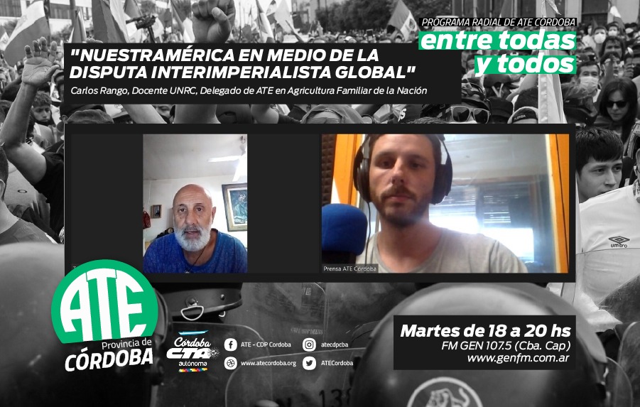 El panorama internacional que enfrentan los pueblos en un contexto de crisis del capitalismo, guerras y conflictos entre las potencias y reflujo de gobiernos moderados en Latinoamérica son marco para que el compañero, docente universitario y delegado de ATE en la Secretaria de Agricultura Familiar Campesino Indígena (SAFCI), Carlos Rang, brinde una entrevista al programa radial Entre Todos y Todas, que la Secretaría de Prensa de ATE Córdoba emite por GEN FM 107.5, cada martes de 18 a 20 horas.