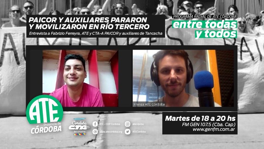 Para charlar sobre la actividad y el estado de situación del conflicto, el programa radial Entre Todos y Todas, que emite la Secretaria de Prensa cada martes por GEN FM 107.5, entrevistó al compañero Fabrizio Ferreyra que trabaja como auxiliar en la localidad de Tancacha.