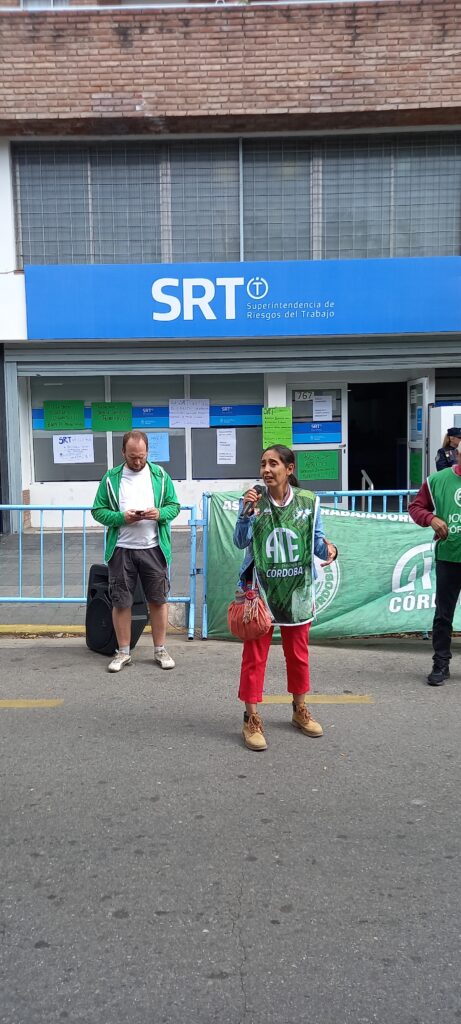 A la hora de valorar la movilización, Giuliani dijo que “decidimos hacer el acto central en la sede de la SRT, un organismo sensible porque acá se regulan diferentes cuestiones relacionadas con la salud de los trabajadores, pero acá el Estado Nacional tiene al personal precarizado, con contratos de 100 mil pesos, perseguidos políticamente por su actividad gremial y acaban de imponer descuentos por hacer asambleas donde ATE resolvió un plan de acción días atrás. Por eso la solidaridad antes que nada de nuestro sindicato con las y los compañeros del organismo”.