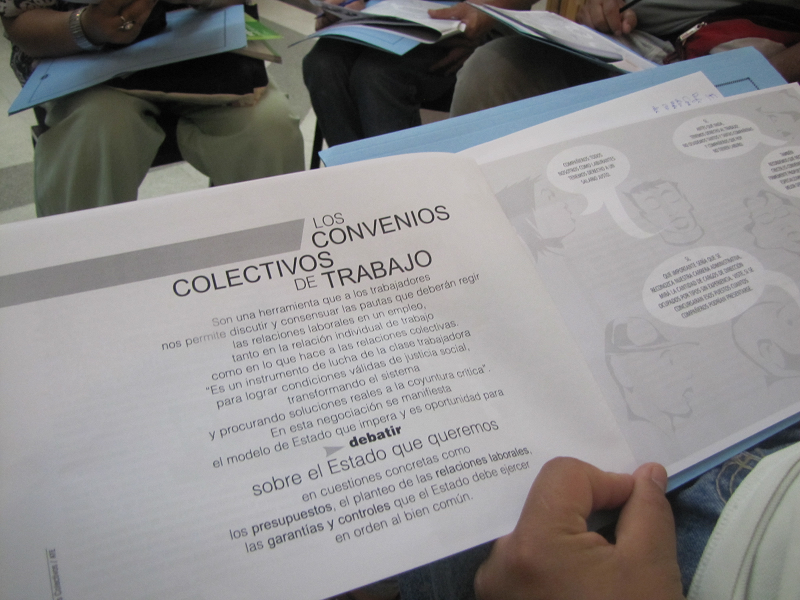 Nuestra asesora letrada, María Terragno, participó dando los lineamientos fundamentales sobre la importancia de los convenios colectivos de trabajo. Estos acuerdos de partes entre los trabajadores por un lado y los patrones por otro constituyen una herramienta fundamental para fijar salarios y condiciones dignas de trabajo como parte de una política sindical que tiende a una justa redistribución social de la riqueza. Se realizo también un recorrido histórico de la problemática y se discutió sobre la modificación de Código Civil y las implicancias para la clase trabajadora.