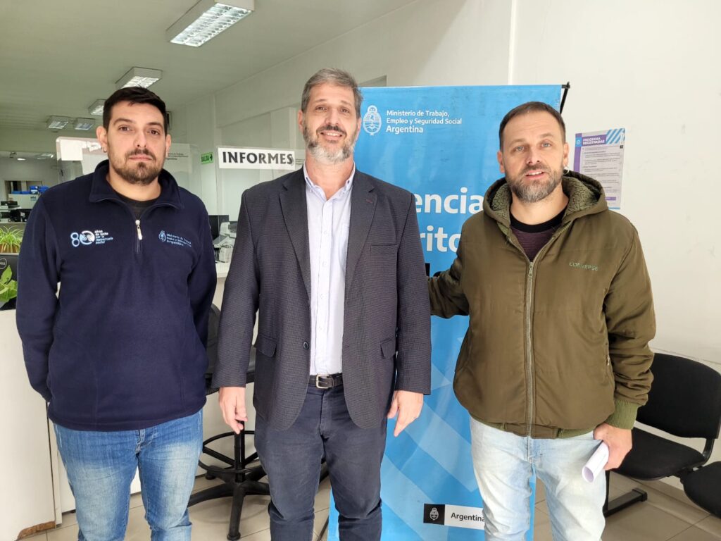 Hoy por la mañana el secretario General de ATE Córdoba, FEderico Giuliani, junto al delegado ATE del sector, Emiliano Navarro, mantuvieron una audiencia con el Delegado de la Agencia Territorial del Ministerio de Trabajo de la Nación, Ignacio Baselica, a los fines de trasladarle una agenda de temas pendientes de resolución en el organismo en Córdoba.