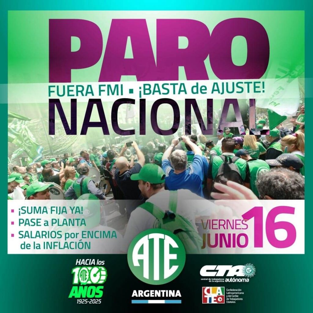 De acuerdo con lo resuelto la semana pasada en el Plenario de Delegados y Delegadas de Organismos Nacionales, este miércoles y jueves proseguirá la realización de asambleas en diferentes reparticiones del Estado -se iniciaron el lunes-, en el marco de la Campaña de Agitación y Propaganda camino al Paro Nacional Activo de los estatales ATE y la CTA Autónoma con asambleas, plenarios, movilizaciones y cortes de ruta en todo el país que tendrá lugar el próximo viernes 16 de junio, en el marco del plan de lucha que se lleva adelante desde el comienzo del año.