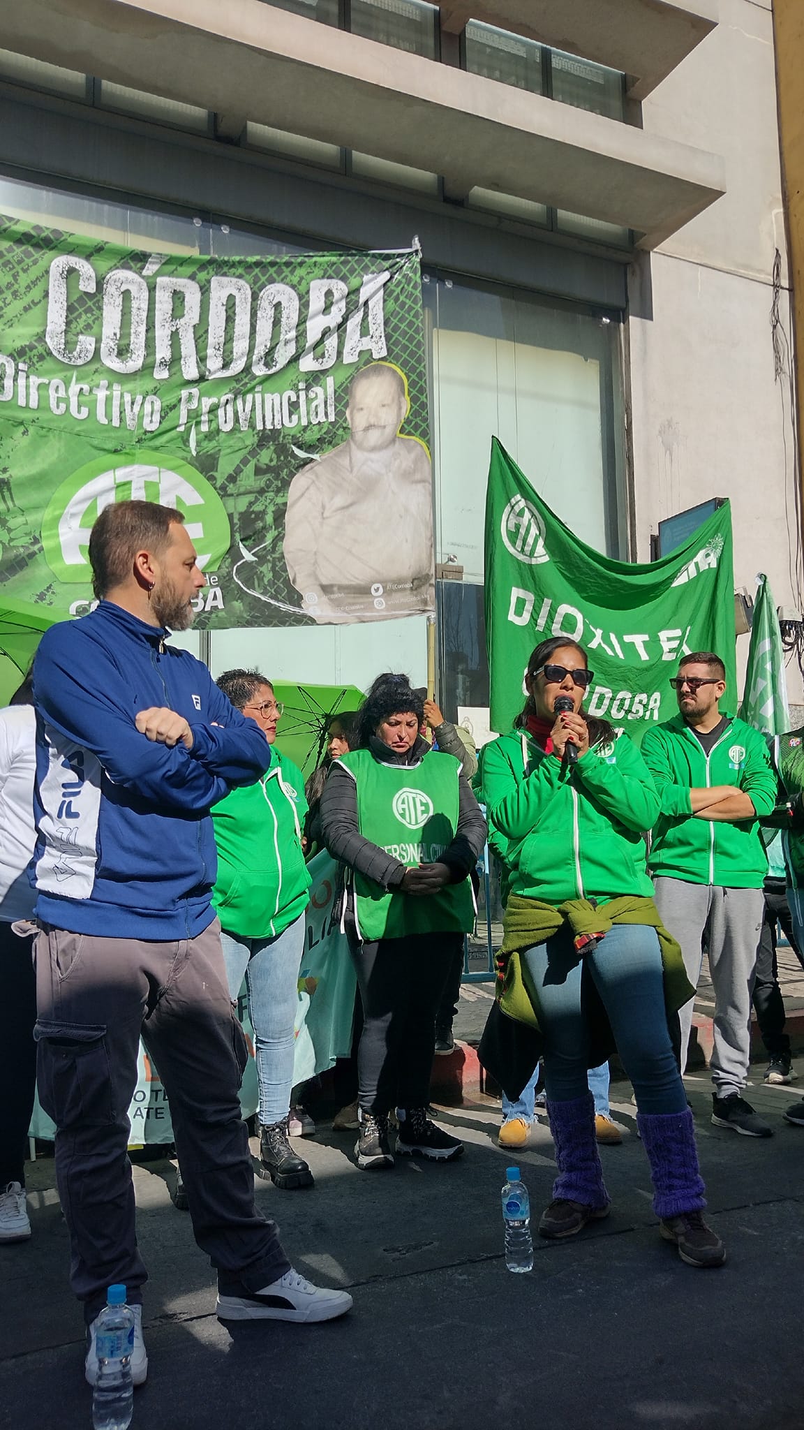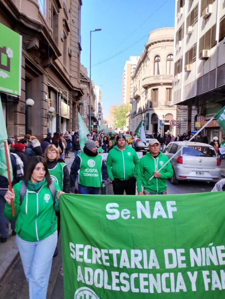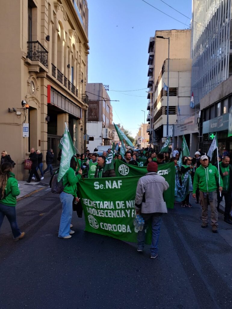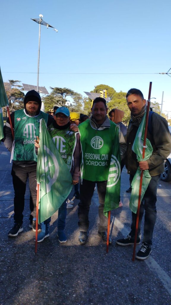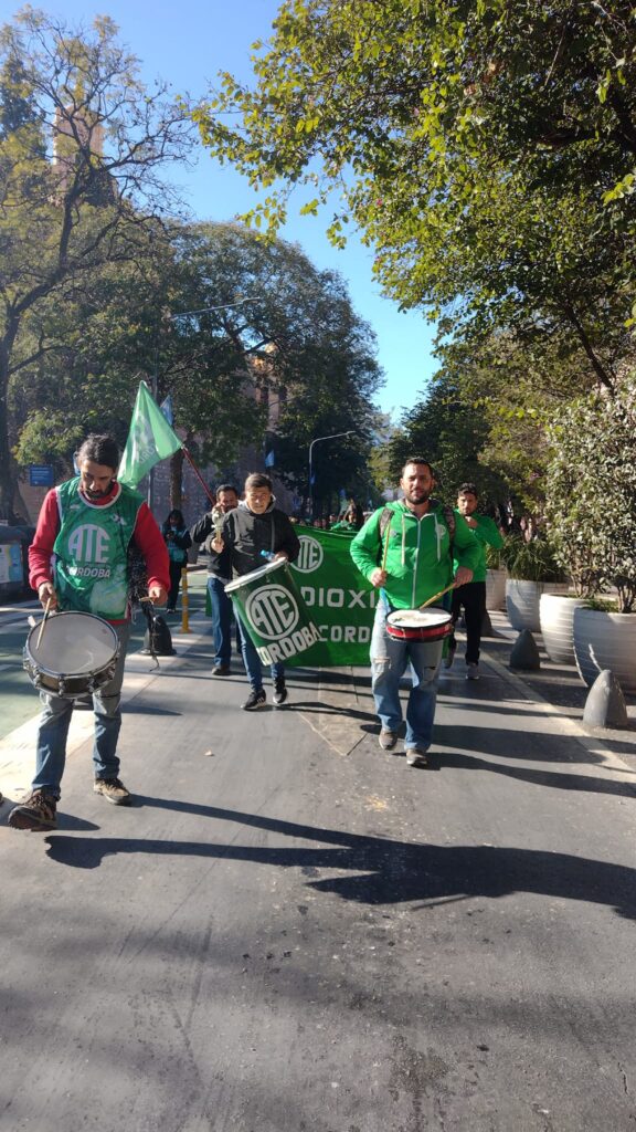 El secretario General de ATE Córdoba, Federico Giuliani, encabezó la columna principal que confluyó con los distintos grupos en 27 de abril y av. Vélez Sarsfield, para luego marchar al Ministerio de Trabajo de la Nación, donde se llevó a cabo el acto conjunto.