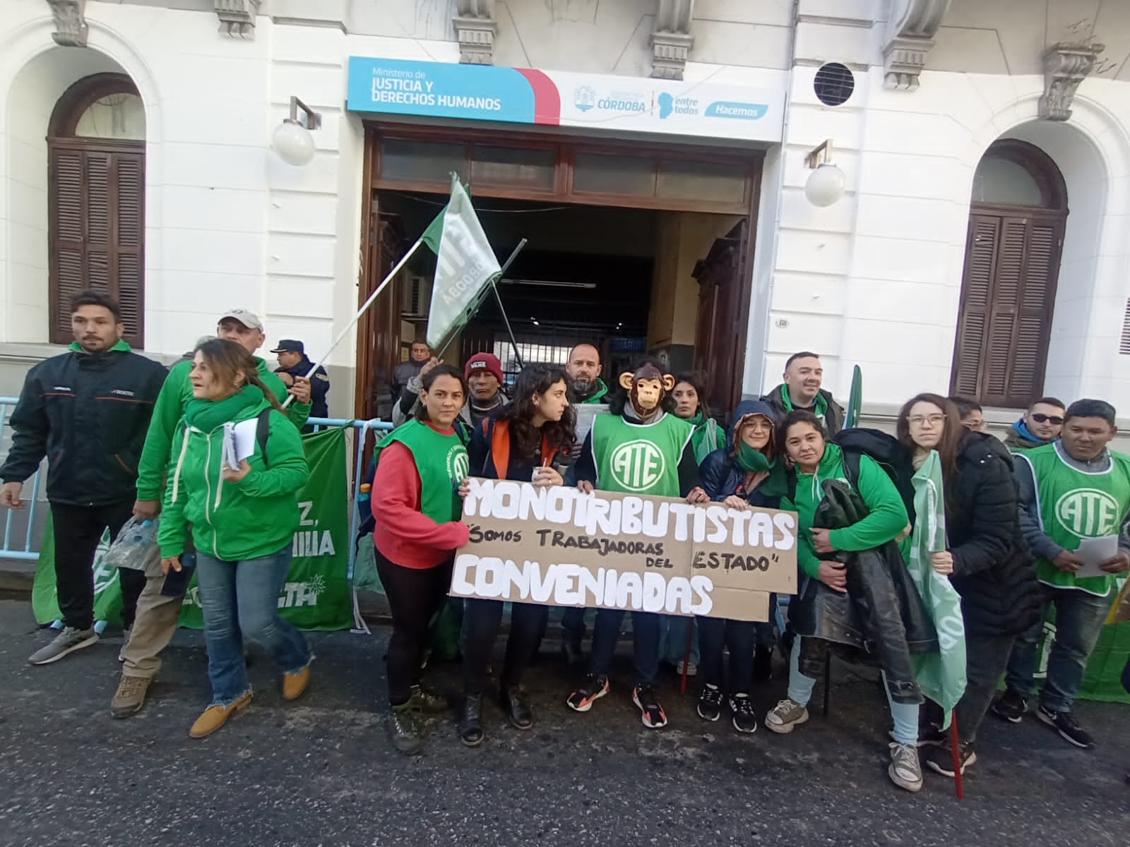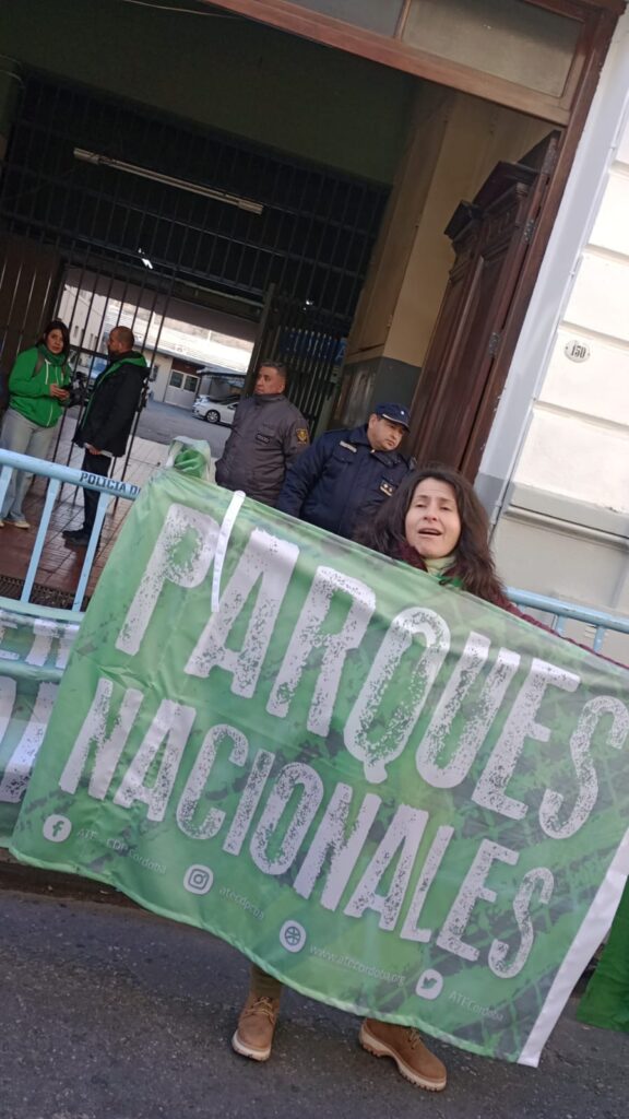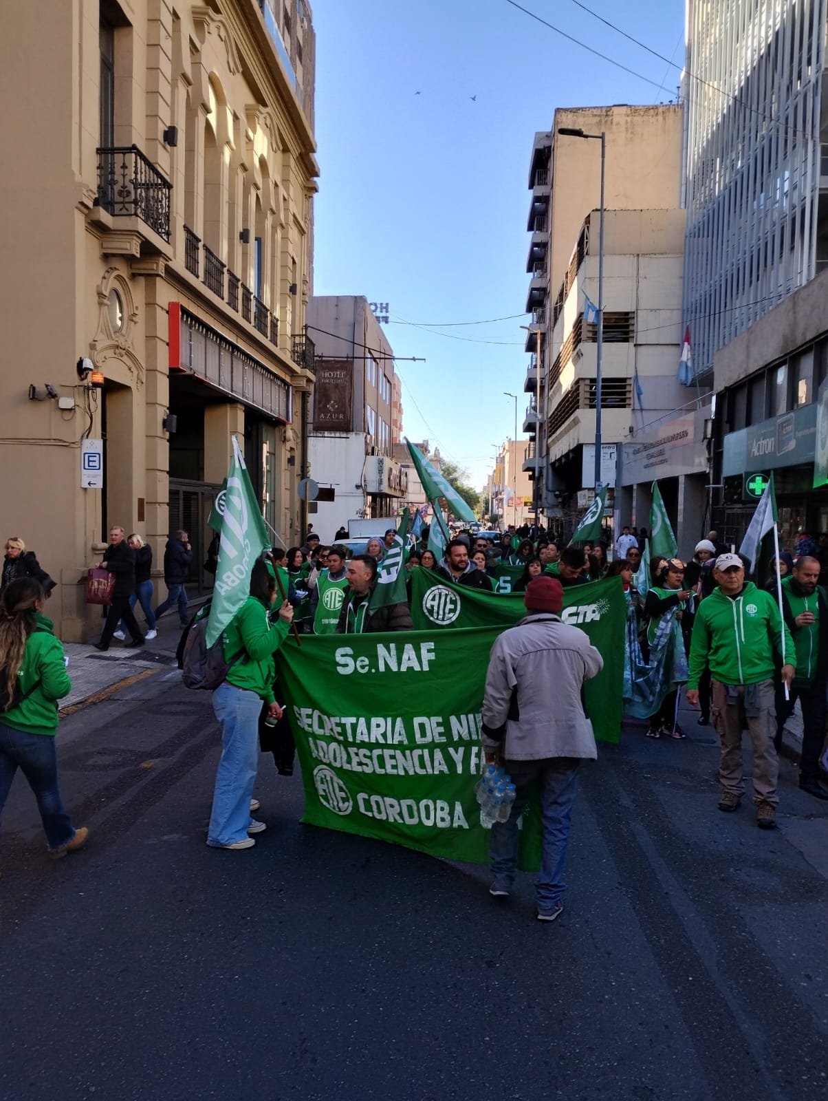 El secretario General de ATE Córdoba, Federico Giuliani, encabezó la columna principal que confluyó con los distintos grupos en 27 de abril y av. Vélez Sarsfield, para luego marchar al Ministerio de Trabajo de la Nación, donde se llevó a cabo el acto conjunto.