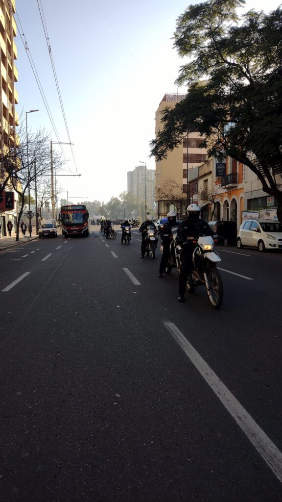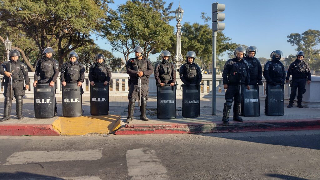Giuliani dijo que la prensa que “repudiamos la presencia policial desmedida, el aparato represivo a pleno, Infantería y los Grupos Comando de Choque, que nos acompañó toda la marcha. Tuvimos que desalojar el Puente Centenario porque nos iban a reprimir, a pesar de que el corte se realizó en media calzada. Esto marca el escenario que han creado, imputación a los referentes, criminalizar la protesta tratándola como un delito. Así nos dijo el oficial a cargo del operativo”.