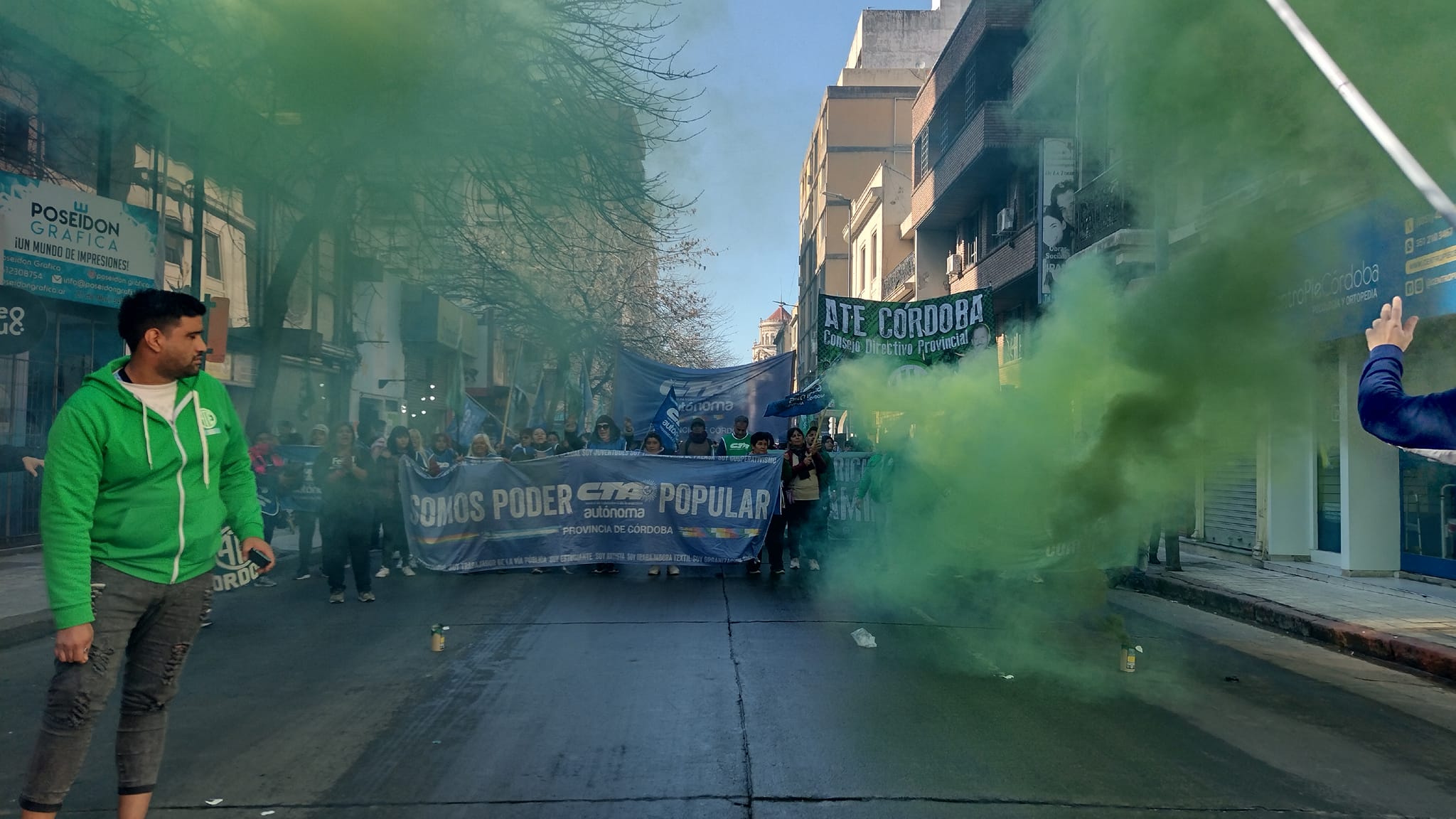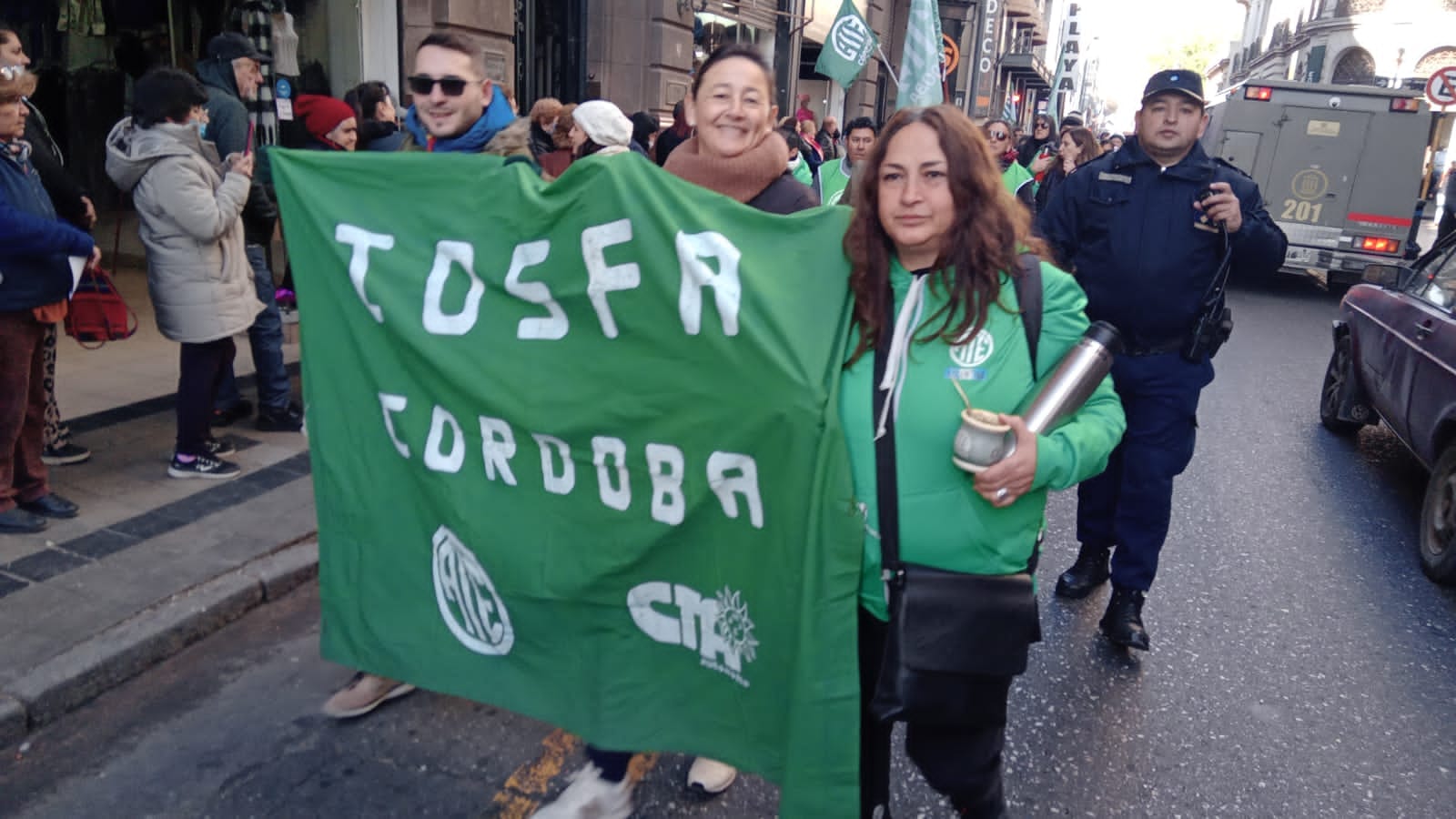 “Este mensaje también es para la Cámara de Comercio de Córdoba, esa que llevó un habeas corpus a la pata judicial del cordobesismo y que rápidamente un juez de doble apellido, parte de la calaña oligárquica de la Córdoba paradojal, definiera rápidamente que si marchamos supuestamente sus ventas caen. La verdad es que sus ventas caen porque los laburantes no podemos permitirnos salir a comer una pizza, no compramos unas zapatillas ni útiles escolares. No venden porque no hay guita en la calle, porque laburamos para seguir siendo pobres”.